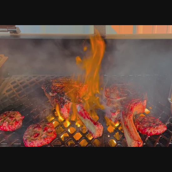 Massive bone-in ribeye showcasing the iconic tomahawk presentation. Each steak weighs 2.75–3.75 lb, delivering substantial marbling and rich flavor ideal for high-heat searing or reverse-sear methods. Vacuum-sealed for freshness and easy storage. Perfect for special occasions, premium dinners, or sharing. The extended bone handle adds visual drama to any plate while contributing to depth during cooking. This massive steak will always be the star of the show!